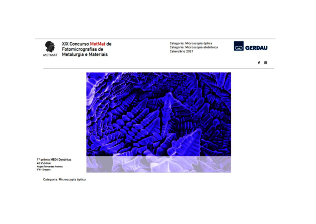Angelo F. Andreoli' was awarded 1st prize in a contest: XIX MetMat Metallurgy and Materials Photomicrograph. Organized by the Polytechnical School of the University of São Paulo and GERDAU.