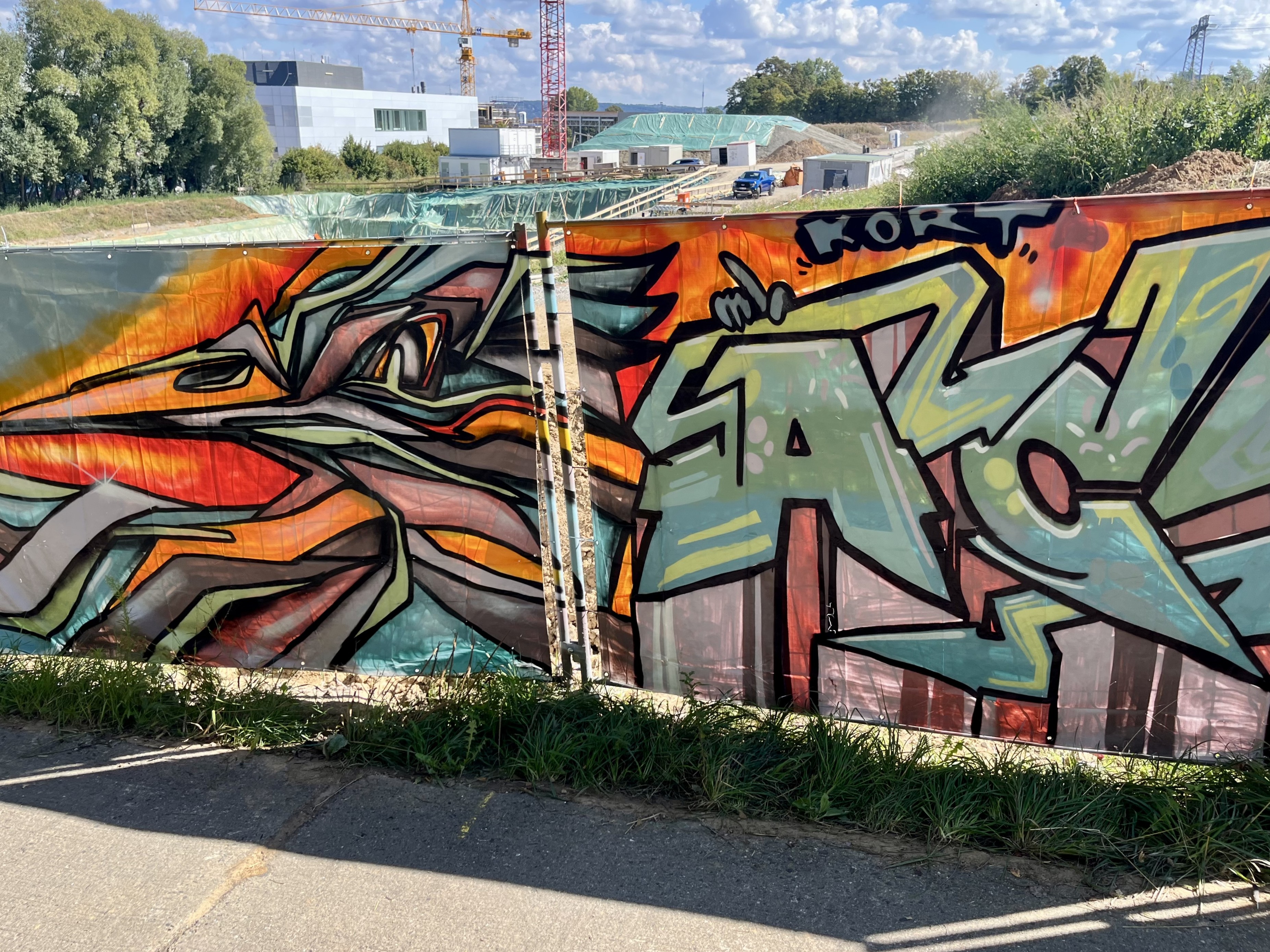 Es wird bunt auf dem Baufeld für unseren Forschungsneubau an der Nöthnitzer Straße! Über das Wochenende haben Graffitikünstler*innen unsere Baustelle in eine farbenfrohe Galerie verwandelt. Die beeindruckenden Kunstwerke aus der Sprühdose wurden im Rahmen eines Workshops des SPIKE Dresden e.V. – Jugend- und Kulturzentrum – realisiert. Wissenschaft trifft Kreativität – ein schönes Zeichen für die Vielfalt und Offenheit unseres Hauses.