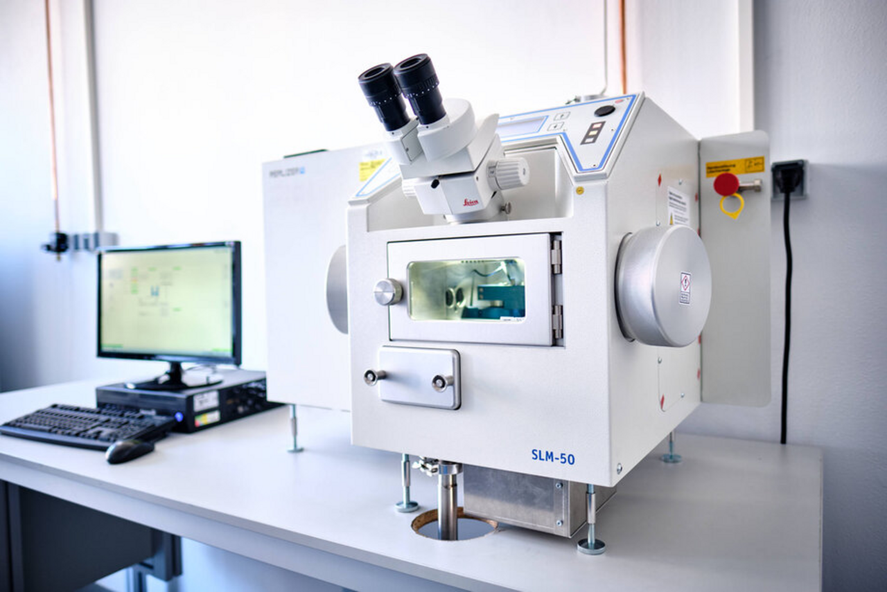 Desktop machine for material qualification (Fe-, Ti-alloys, metallic glasses, Co-alloys) and the processing of precious metals